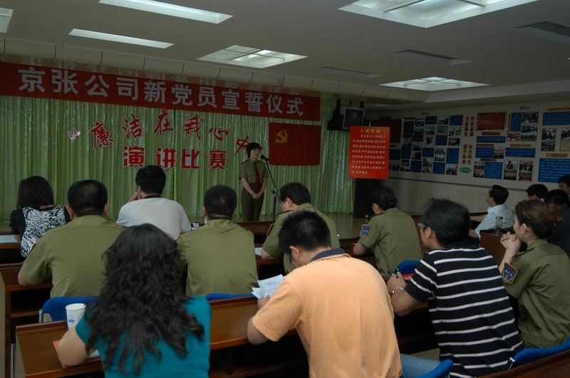 為紀念建黨88周年,促進“干部作風建設年”活動的深入開展,進一步激勵黨員干部廉潔自律,弘揚黨的優(yōu)良傳統(tǒng)和作風,樹立清正廉明的良好形象,6月30日下午,公司黨委在四樓會議室舉行了“廉潔在我心中”演講比賽。