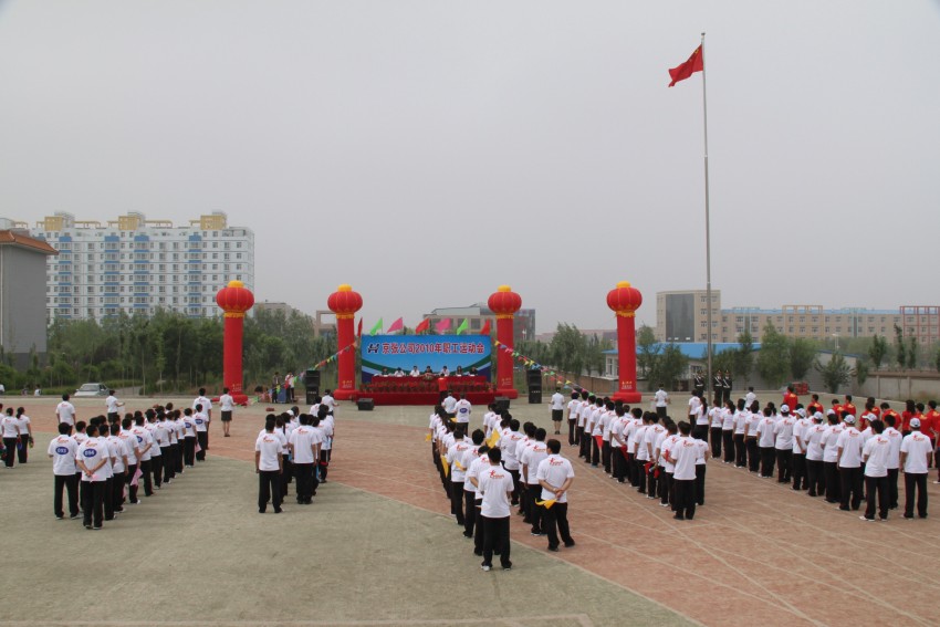 上午九點(diǎn),運(yùn)動(dòng)會(huì)正式開始。首先進(jìn)行了隆重的開幕式。三名旗手護(hù)衛(wèi)著國旗為前導(dǎo),200余名參賽隊(duì)員、裁判員在身著制式服裝、英姿勃發(fā)的引導(dǎo)員的引領(lǐng)下,邁著整齊劃一的步伐,揮舞著彩旗、花環(huán)、帽子通過主席臺(tái)。專程從北京前來參加開幕式的李仕春董事長和公司領(lǐng)導(dǎo)在主席臺(tái)上向大家招手致意。莊嚴(yán)的升國旗儀式之后,劉建民總經(jīng)理、李仕春董事長分別發(fā)表了熱情洋溢的講話,對(duì)運(yùn)動(dòng)會(huì)的成功舉辦表示祝賀,對(duì)公司近年來在物質(zhì)文明和精神文明建設(shè)中所取得的成績給予肯定,對(duì)大家的辛勤工作表示感謝,并預(yù)祝運(yùn)動(dòng)會(huì)取得圓滿成功。
