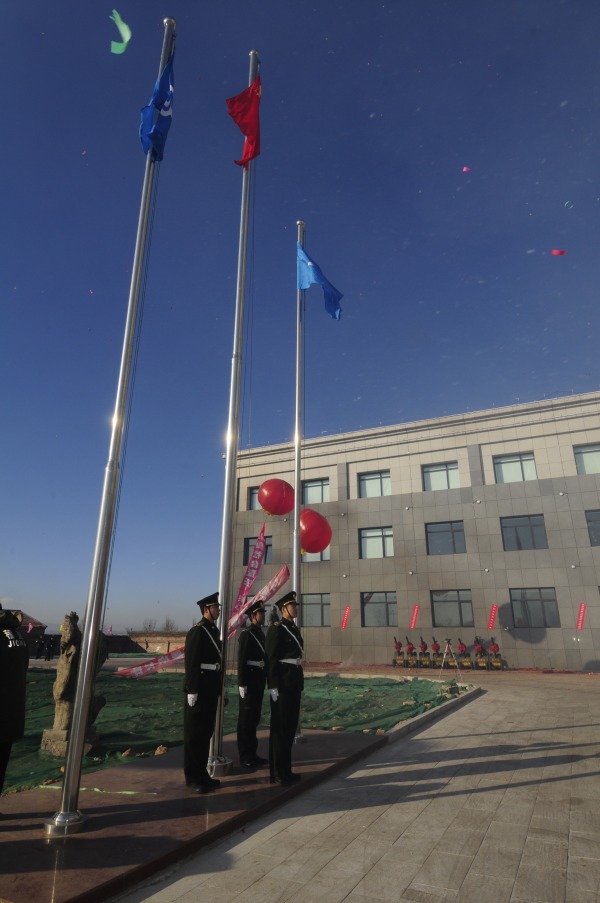 9時(shí)45分,喜慶的鞭炮聲響起,李仕春董事長(zhǎng)、劉建民總經(jīng)理帶領(lǐng)公司領(lǐng)導(dǎo)班子成員,穿過(guò)彩虹門,闊步走進(jìn)大樓院內(nèi)主會(huì)場(chǎng)。9點(diǎn)50分,葉成海副總經(jīng)理宣布剪彩儀式開(kāi)始。三名國(guó)旗隊(duì)員手托國(guó)旗,正步進(jìn)入會(huì)場(chǎng),在隆隆禮炮和鏗鏘激昂的國(guó)歌聲中,五星紅旗冉冉升起。