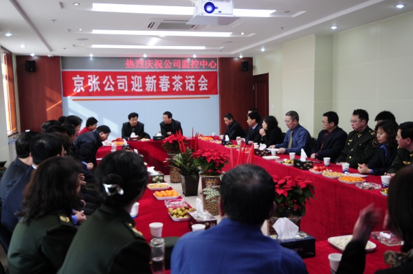 李仕春董事長(zhǎng)、劉建民總經(jīng)理分別致辭,他們?cè)跓崆檠笠绲闹v話中,簡(jiǎn)要總結(jié)了今年公司取得的輝煌成績(jī),對(duì)全體職工為此付出的辛勤努力表示感謝。兩位領(lǐng)導(dǎo)還向全體職工及他們的家屬拜年,祝大家春節(jié)快樂(lè),闔家幸福。兩位領(lǐng)導(dǎo)親手為大樓正式啟用剪彩。隨著鮮艷的綢花剪落盤(pán)中,現(xiàn)場(chǎng)掌聲雷動(dòng),院內(nèi)鞭炮齊鳴,空中彩花如雨,從這一刻起,京張監(jiān)控中心大樓正式投入使用。剪彩儀式后,公司中層以上干部在七樓會(huì)議室舉行了迎新春茶話會(huì),共慶新春佳節(jié)。