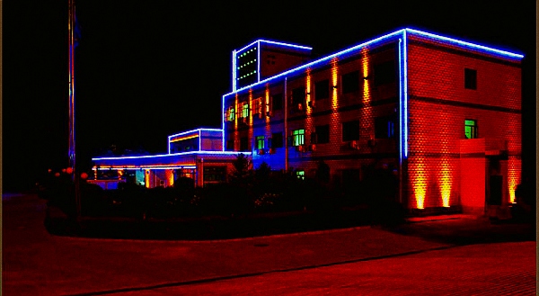 本次亮化工程與公司辦公大樓亮化格調(diào)一致,產(chǎn)生了遙相呼應的亮化效果。投光燈的使用凸顯了建筑物大氣端莊的風格,全彩數(shù)碼管勾勒出樓體的輪廓,時而七彩漸變,時而如流水靜靜淌過。點光源、泛光燈條和洗墻燈的使用更是極具畫龍點睛的效果。