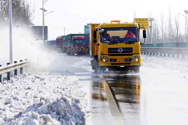 5日上午,公司接到上級電話通知和省廳轉(zhuǎn)發(fā)的北京市交通安全應(yīng)急指揮部《關(guān)于共同開展京藏高速公路搶通保暢工作的緊急函》,按照領(lǐng)導(dǎo)批示,公司投入全部養(yǎng)護(hù)人員,并動用協(xié)作單位力量,最大限度加大除雪力度,加快處置京張路段積雪,確保在八達(dá)嶺路段的擁堵車輛及時駛離北京,有效緩解了北京市的交通壓力。當(dāng)晚,為防止路面結(jié)冰,公司又派出融雪劑噴灑車上路進(jìn)行了補充作業(yè)。
