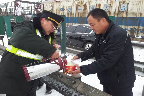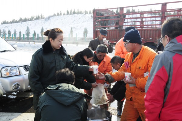 在這次除雪過程中,京張公司全面啟動應(yīng)急預(yù)案,各部門齊心協(xié)力,值班人員24小時在崗,監(jiān)控中心及時發(fā)布路況。在全力做好除雪工作的同時,公司、各收費站和服務(wù)區(qū)還派出服務(wù)車為路上滯留人員送去開水、方便面、火腿腸和榨菜等應(yīng)急食品,并給部分因低溫天氣而拋錨的故障車輛提供維修服務(wù)。同時在路上辛苦工作的養(yǎng)護(hù)工人也喝到了雞蛋湯,吃上了熱氣騰騰的包子。