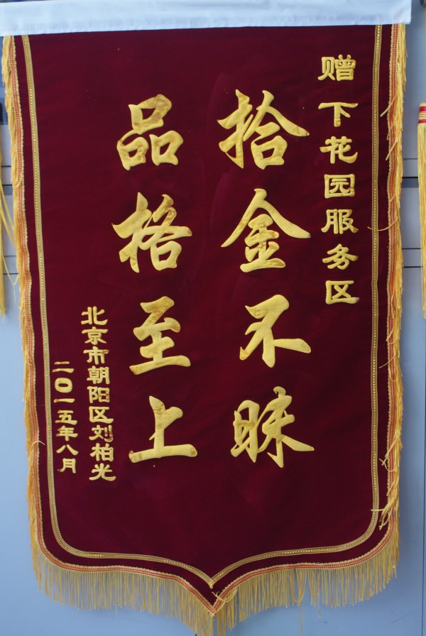 8月4日,北京游客劉先生為京張高速下花園服務(wù)區(qū)送來一面“拾金不昧,品格至上”的錦旗,向該服務(wù)區(qū)員工表示謝意。