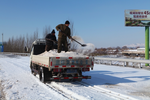 此次除雪,京張公司共出動(dòng)指揮車(chē)、巡查車(chē)、融雪液噴灑車(chē)、融雪劑干灑車(chē)、推雪車(chē)共計(jì)128臺(tái)次,出動(dòng)除雪人員314人次。共撒布融雪劑195噸,噴灑融雪液890噸。由于準(zhǔn)備充分,行動(dòng)迅速,機(jī)械化程度高,達(dá)到了省廳要求的24小時(shí)雙向四車(chē)道通行,48小時(shí)路面無(wú)積雪的要求,所轄京張路段未出現(xiàn)車(chē)輛滯留現(xiàn)象。(何文儒)