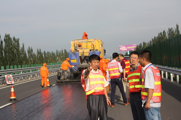 京張高速公路2015年路面微表處和標(biāo)線補(bǔ)劃工程經(jīng)過充分的施工準(zhǔn)備于8月6日正式開工。王啟成總工程師到施工現(xiàn)場(chǎng)檢查了施工情況,對(duì)工程的質(zhì)量控制和安全保暢工作表示滿意。本工程是今年迎國(guó)檢的重點(diǎn)施工項(xiàng)目之一,總投資249.94萬元,預(yù)計(jì)8月30日前全部完工。(王喜會(huì))。