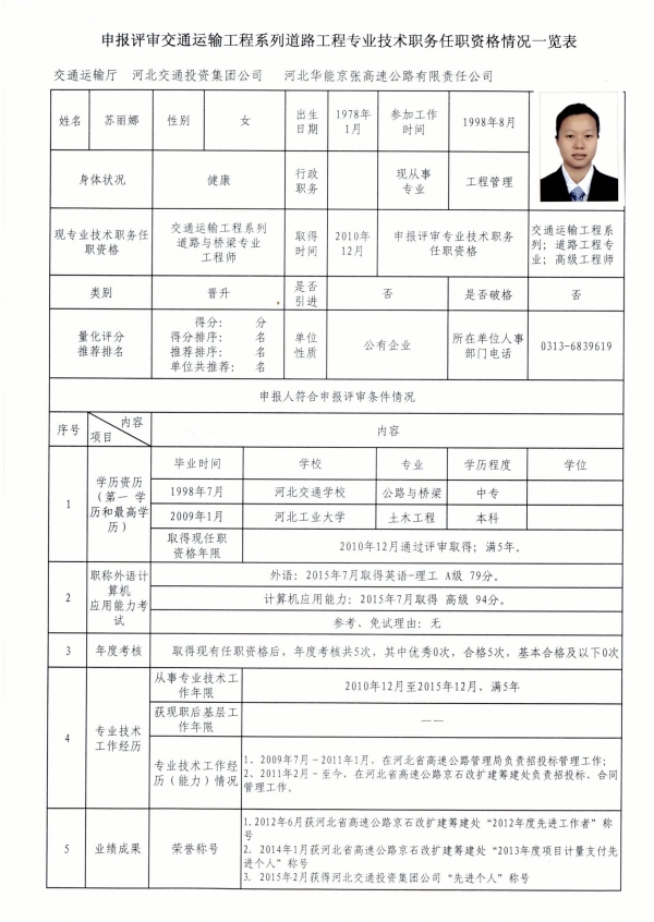 職稱申報(bào)公示(蘇麗娜)