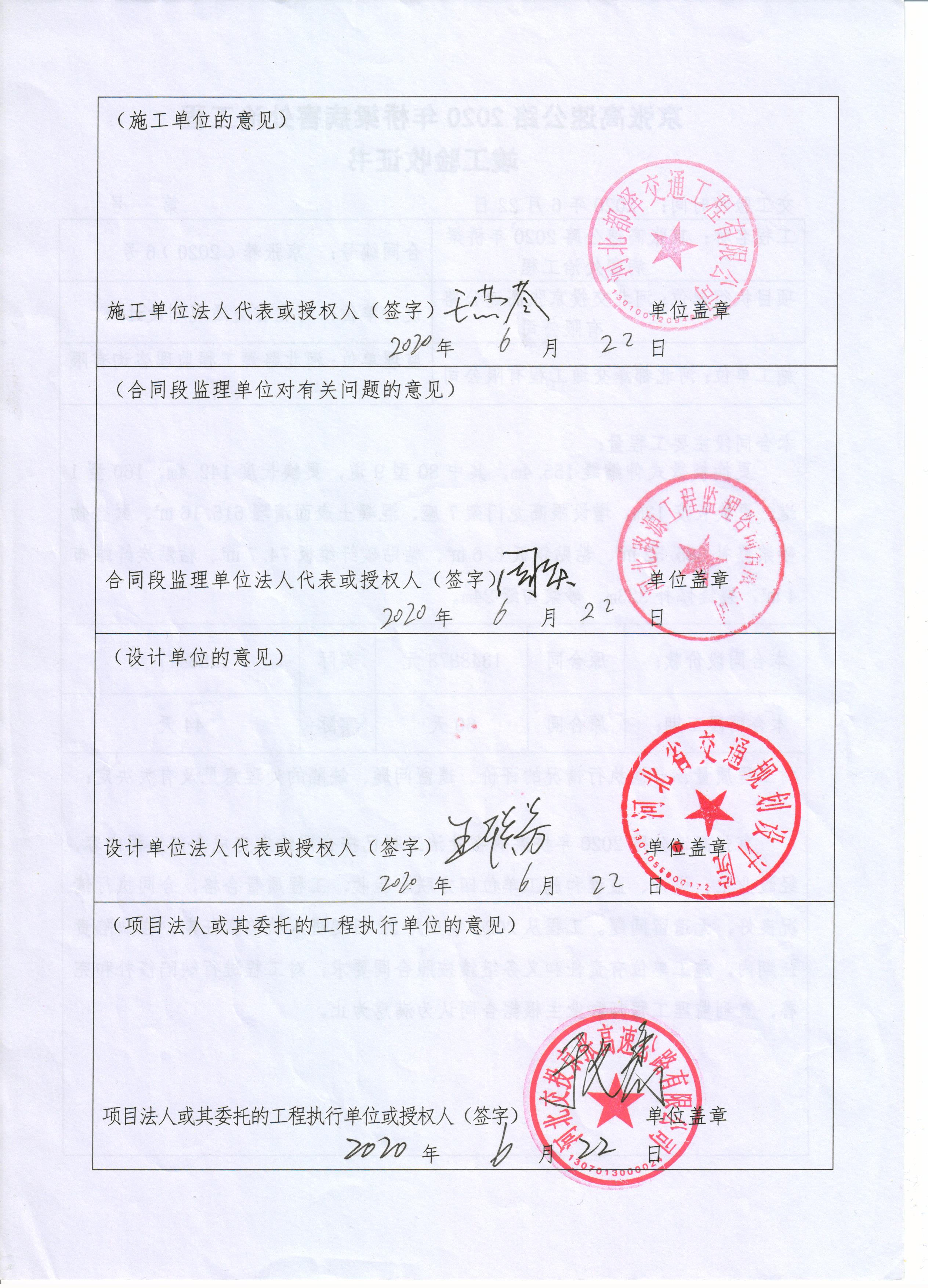 京張高速公路2020年橋梁病害處治工程竣工驗(yàn)收證書